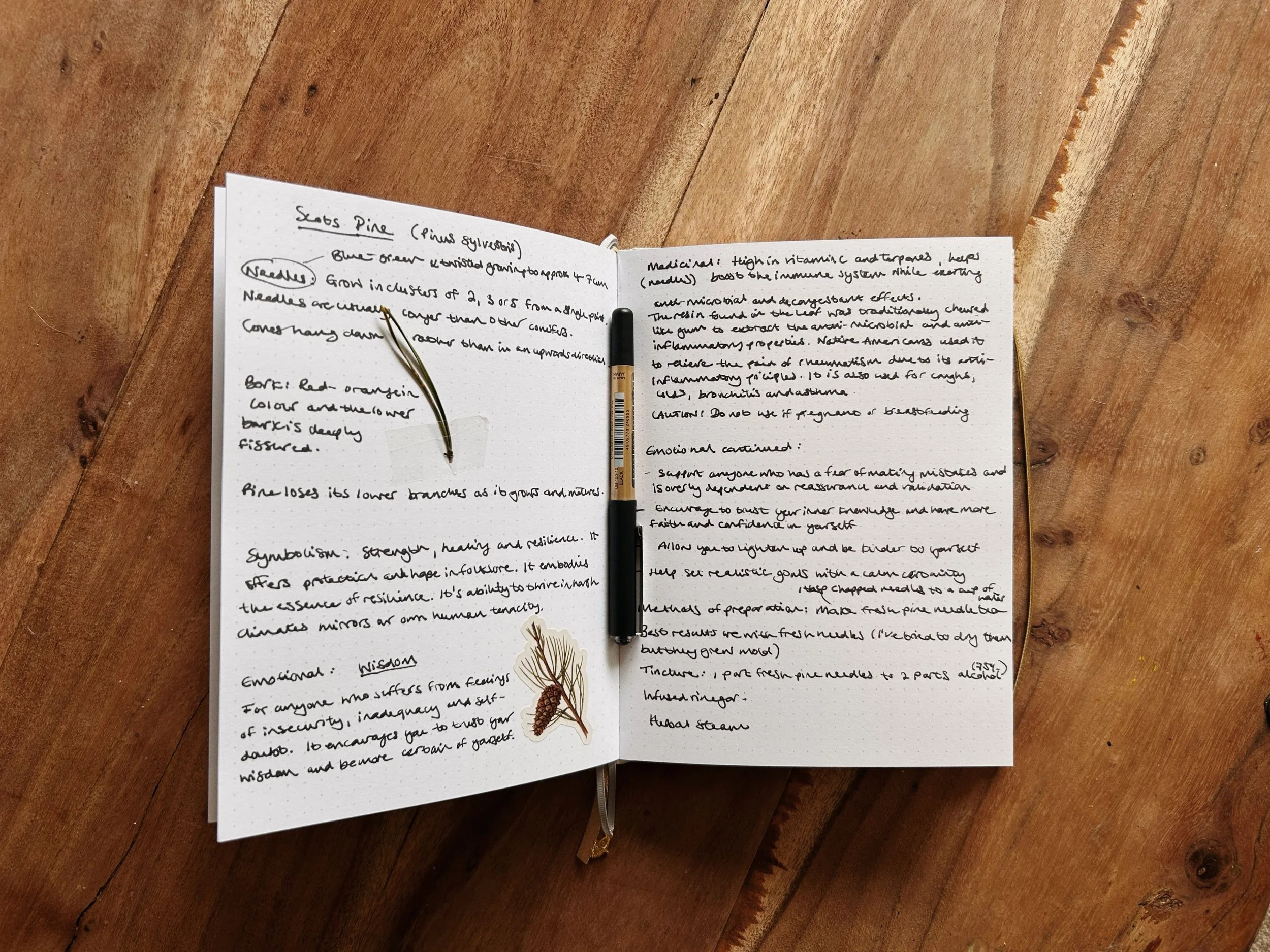 Final notes: The taste on its own was not enjoyable, the stevia completely took over the flavour. Instead I added a tsp of pine needle syrup to a glass of water and it was much improved. It gave the water a slight flavour of pine and I didn’t notice the stevia. I had about 3 teaspoons per day in a glass of water for 2 weeks. I actually didn’t feel run down at all while I was taking it. Interestingly, I felt it affected me more emotionally, I felt comforted by it and found it soothing. The other thing I will take away for next time is that I felt I made more than I needed. As pine can be foraged all year round, I want to remember that I can use less next time. My 500ml bottle would have lasted me much longer than 2 weeks, but ideally you wouldn’t want to keep it for longer than that. As far as my first herbal remedy recipe goes, I’m really happy I gave it a try, I benefited from taking it and I’m looking forward to experimenting more.